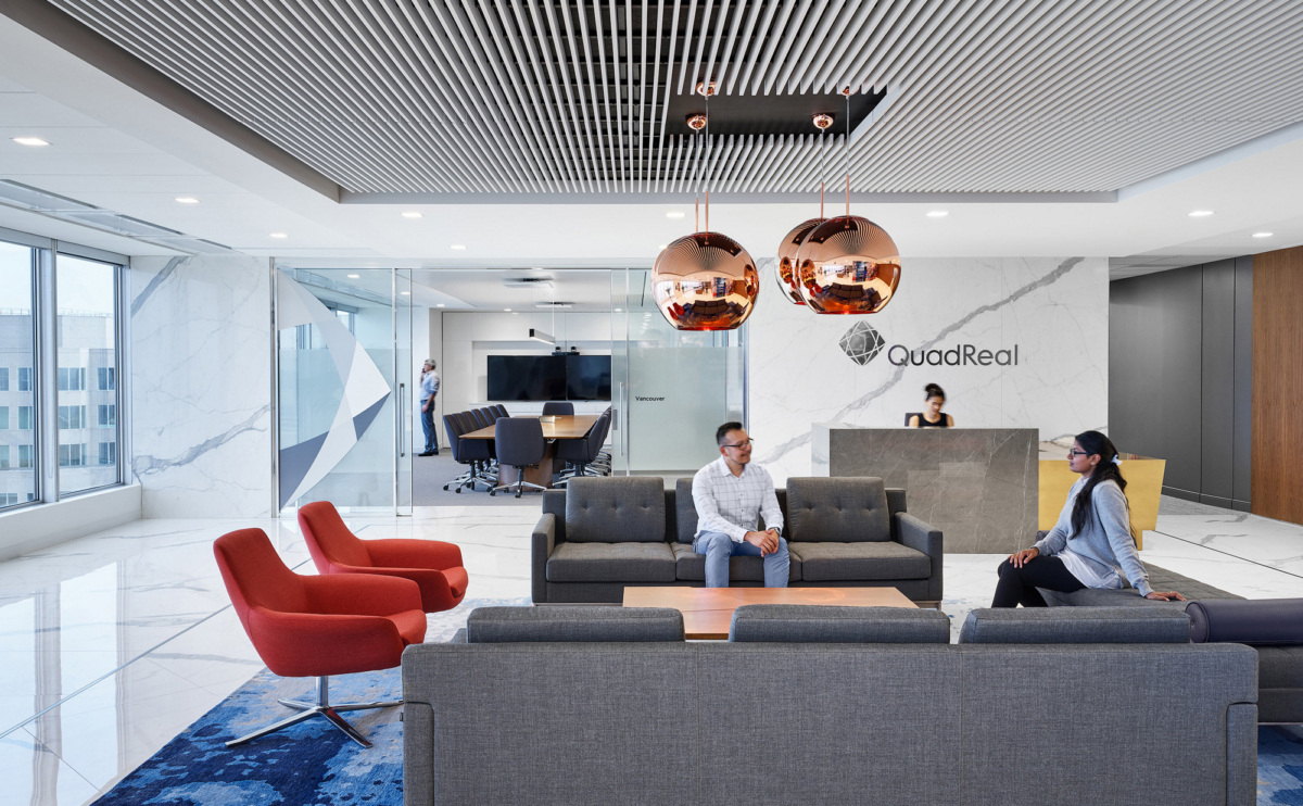该公司与 QuadReal 的执行团队一起制定并执行了一项“愿景练习”,以了解他们的文化、感知身份、工作风格、还有如何定位自己以及未来的工作场所抱负。在这个过程中了解到,新办公室想要摆脱沉闷的老式办公空间,想要一个永恒而现代、精致而诱人、具有积极、年轻活力的空间氛围,以吸引世界一流的人才,并且能够为在这里工作而感到自豪。